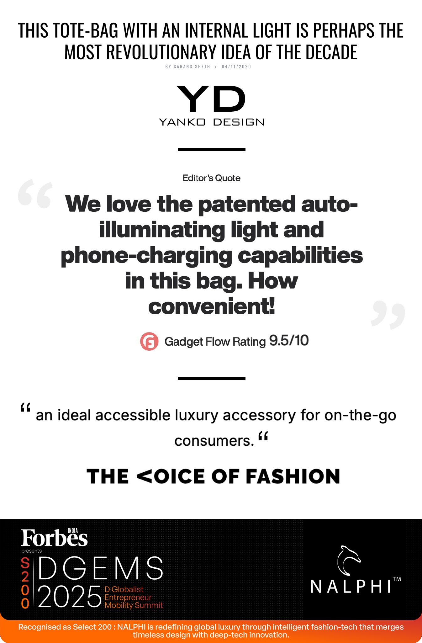 Functional handbags made of luxurious material to improve people's lives in small but might ways.